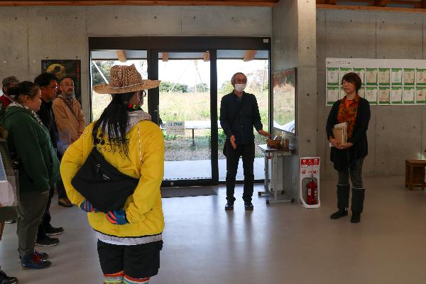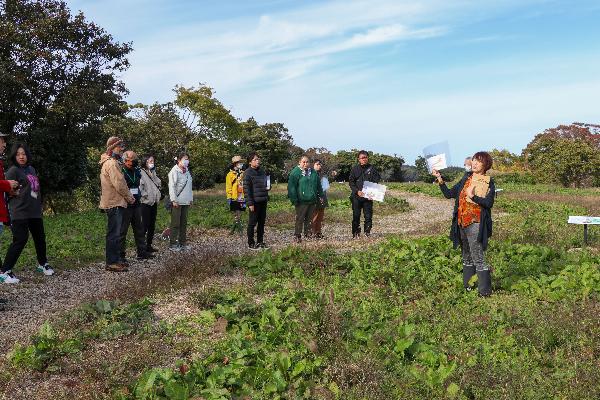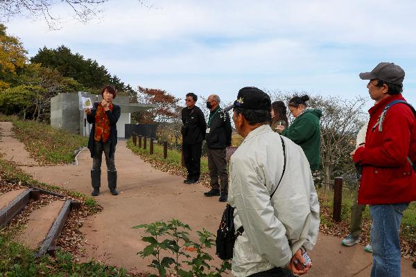 これに伴い、11月8日、オープニングイベントが開催され、浦尻貝塚縄文の丘公園においては、「アートと考古学国際交流研究会」代表で原画の製作者でもある安芸早穂子氏による解説会が開催されました。