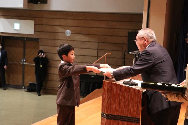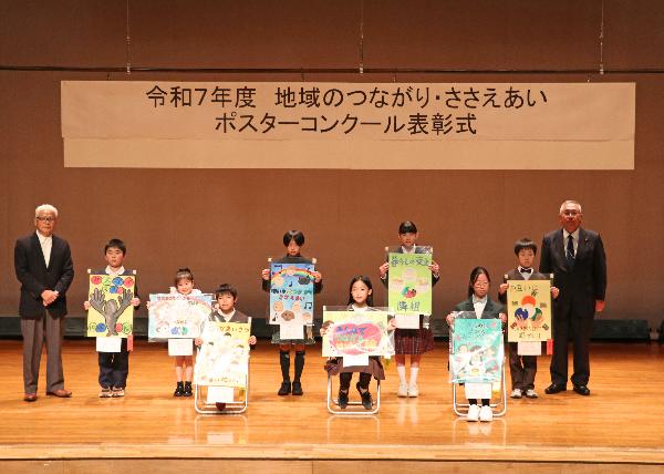 その後、地域コミュニティの大切さを伝える地域のつながり・ささえあいポスターコンクール表彰式が行われ、受賞した小中学生6人へ表彰状が手渡されました。受賞者については、関連ページをご参照ください。
