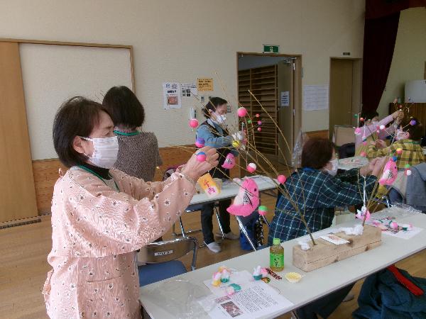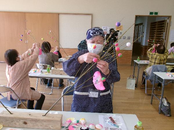 1月15日、「ひばりすこやか(高齢者)学級」で「稲穂せんべい飾り教室」が開催されました。