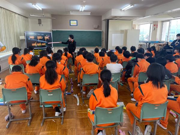 児童たちは、実験やクイズを通してロケットの原理を学び、本市における宇宙関連の取り組みなどについて理解を深めました。