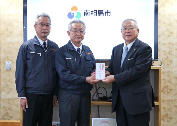 2月26日、市役所において、株式会社原町中央青果市場からの義援金贈呈式を執り行いました。