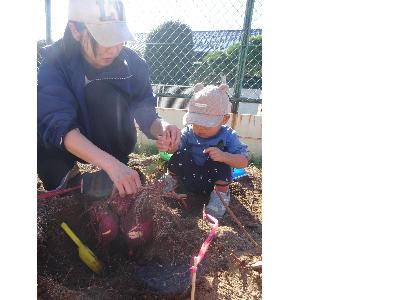 子育て支援センターでは、さつまいもの収穫体験を開催しました。