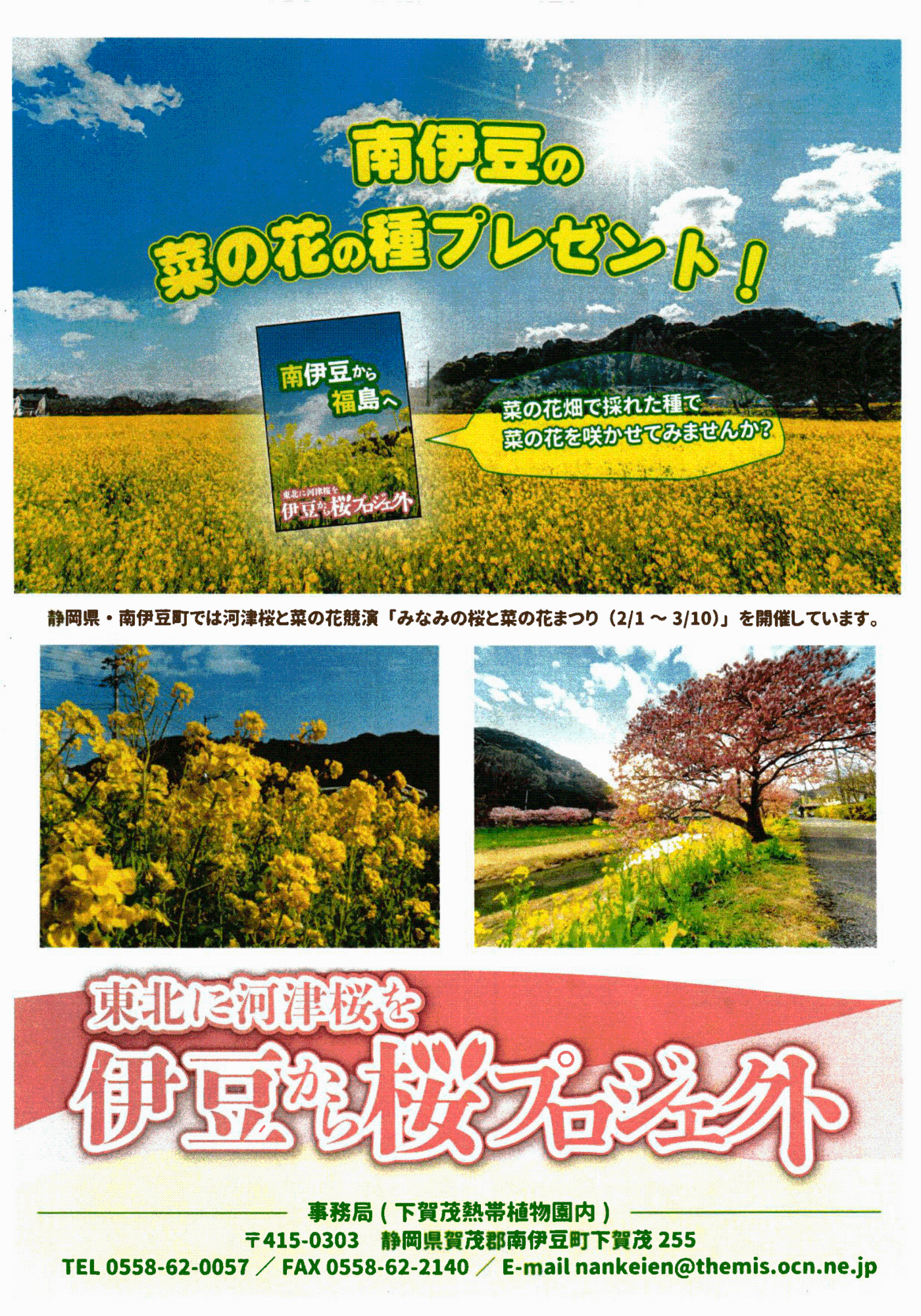 会場にご来場された方には、「伊豆から桜プロジェクト」(静岡県南伊豆町)から、菜の花の種を無料で配布します。