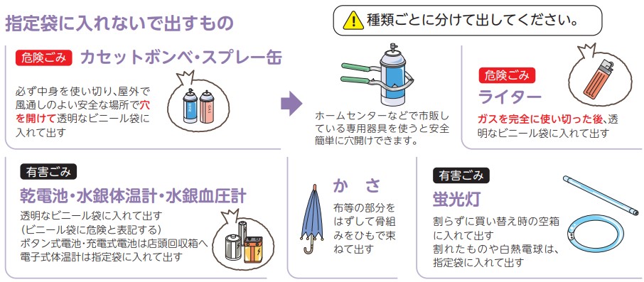 なお、指定袋に入れずに出すものがありますのでご注意ください。