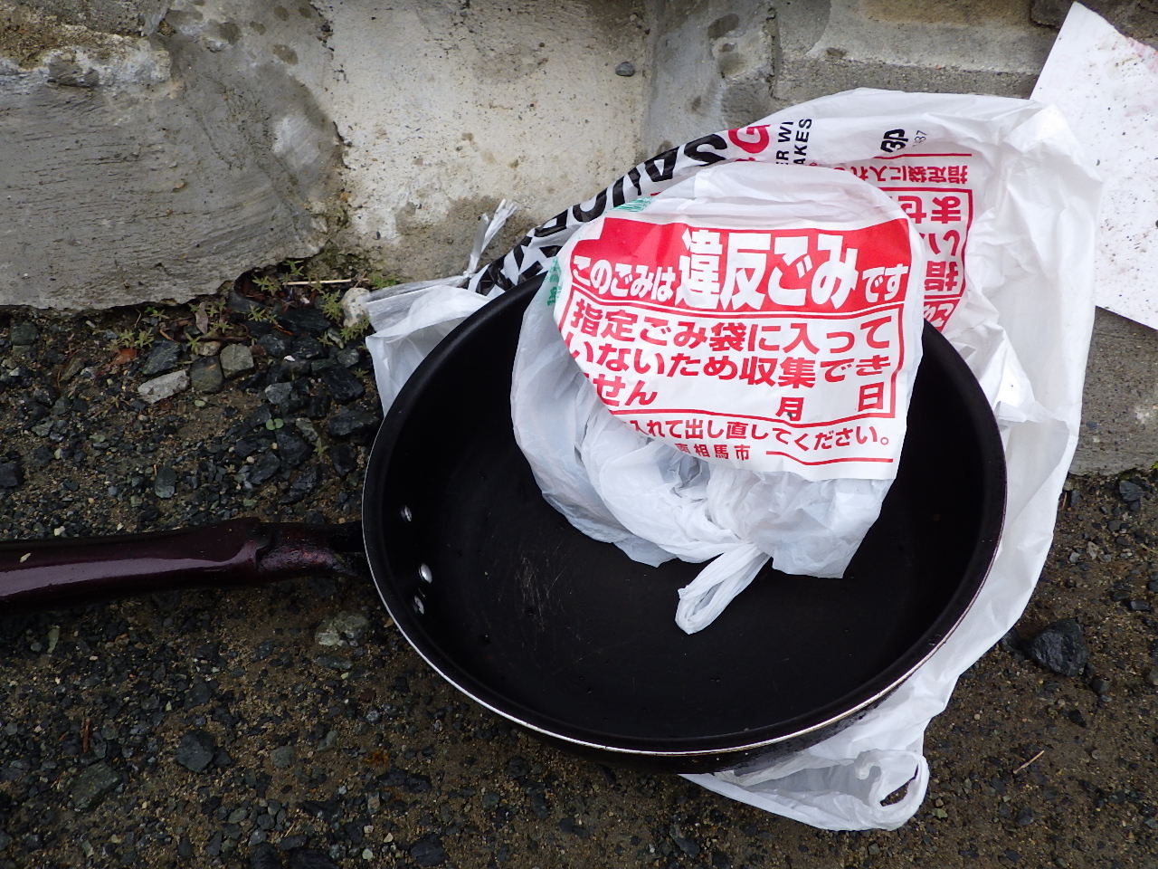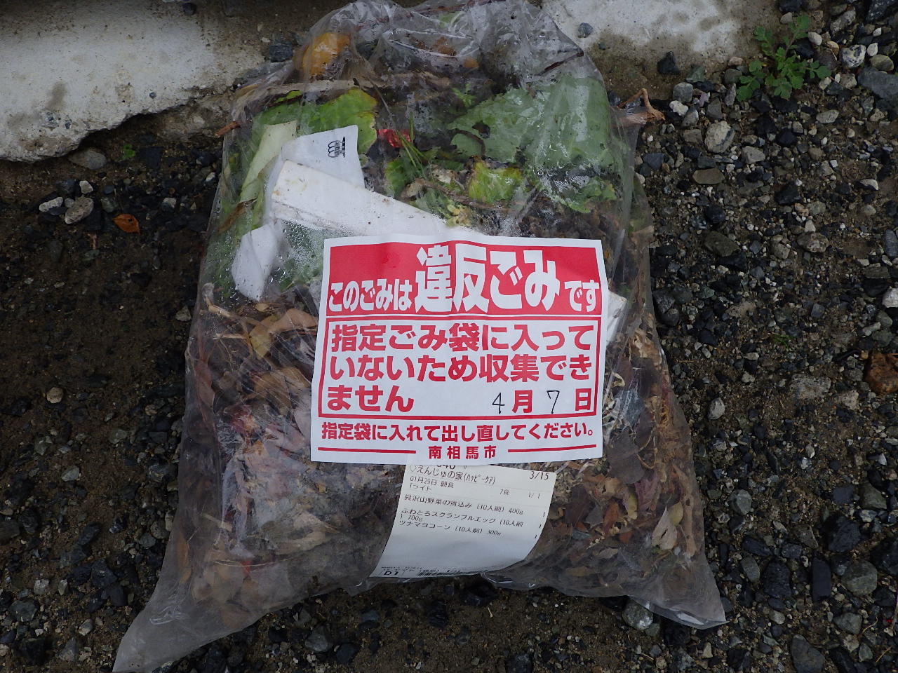例)燃えないごみの収集日に燃えないごみ以外が出されている場合