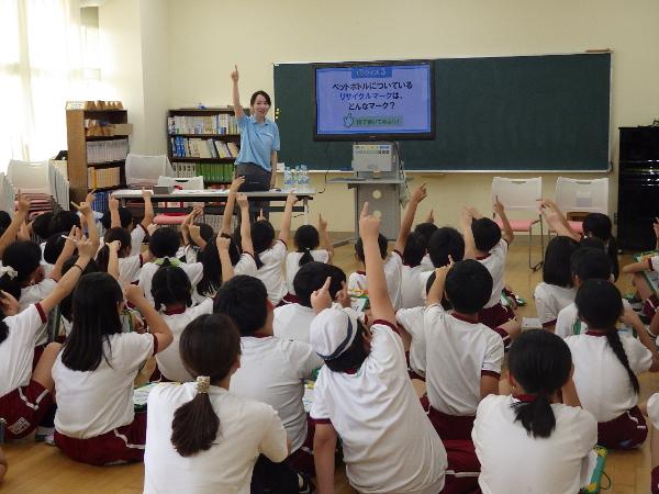 今回の啓発授業は、市が、ペットボトルリサイクルの実施に関する協定を締結している、サントリーホールディングス株式会社の協力を得て実現したもので、授業では、ペットボトルの分別やリサイクルについて学びながら、子どもたちに南相馬市のごみ減量やリサイクル推進について考えてもらいました。