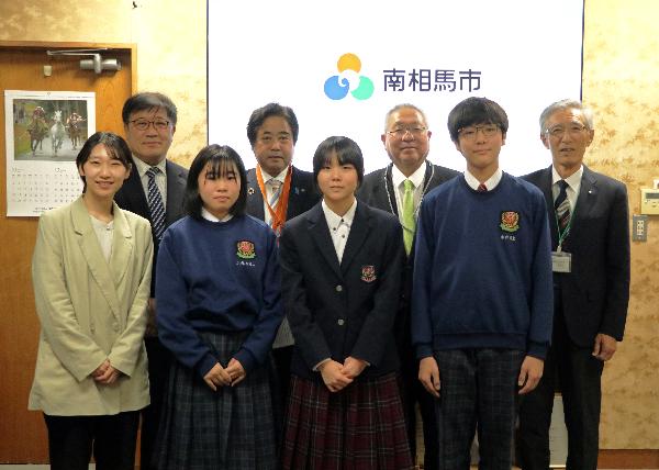 当日は、NPO法人南相馬こどものつばさ代表の西道典氏と事務局長の佐藤慎治氏、市内中学生3人が報告に訪れ、中学生たちは、船旅に参加して体験したことや感じたことなどを市長や教育長へ報告しました。