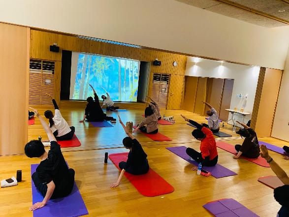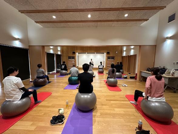 ②シアターヨガ、バランスボール、スライドボードのフィットネス体験
