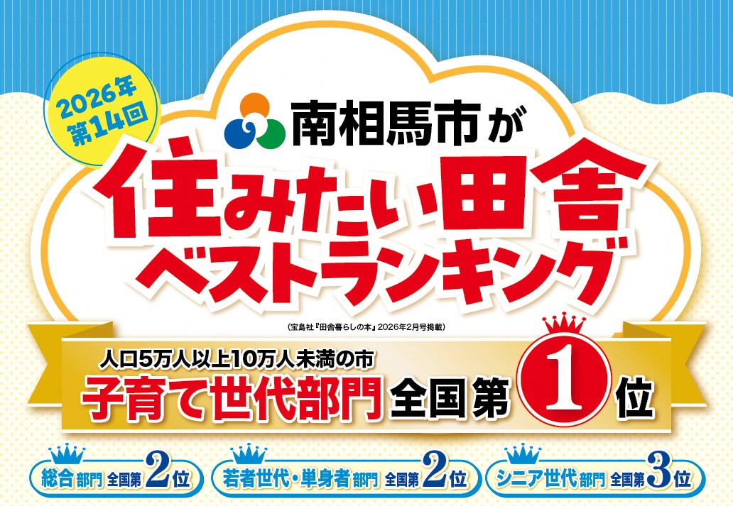 【祝】子育て世代部門 第1位・総合部門 第2位 「2026年版 第14回 住みたい田舎ベストランキング」で南相馬市が受賞