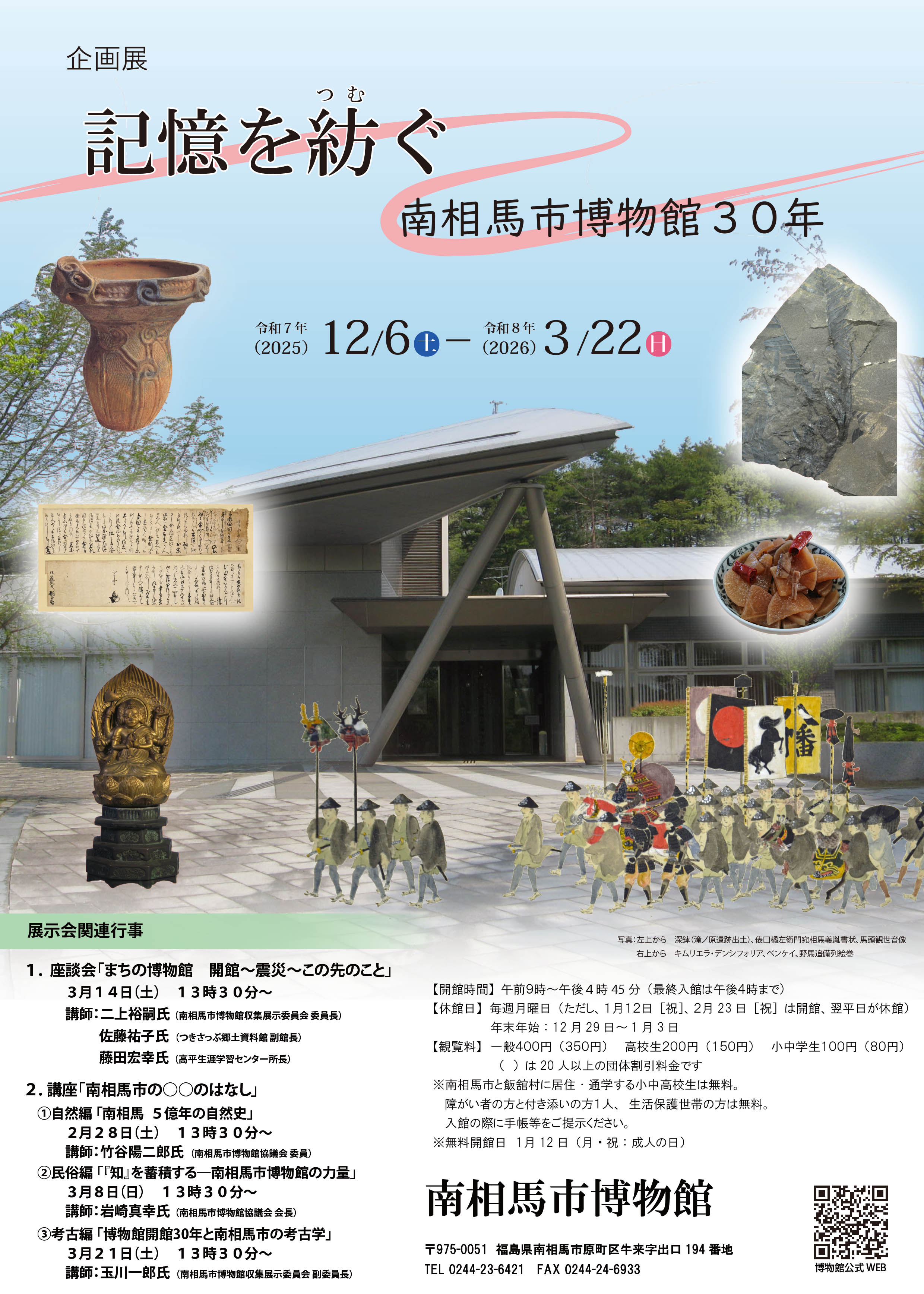 令和7年度企画展「記憶を紡ぐー南相馬市博物館30年」ポスター (JPEG: 1.1MB)
